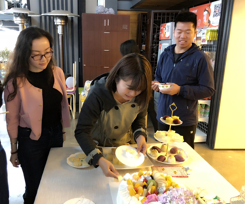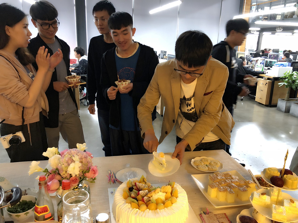 而每月的生日会,总经理都会为过生日的小伙伴们亲手制作一份独家秘制长寿面。一碗碗色香味俱佳,面皮劲道,象征着福寿安康的长寿面惹得在现场的小伙伴们垂延欲滴,摩拳擦掌想一饱口福。同做为寿星的小编有幸分到了一碗,吃干抹净依然意犹未尽,希望每次生日会,都能吃到这么好吃的长寿面!