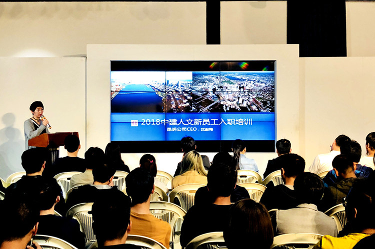 在入职培训会上,总经理沈剑梅女士向新入职的小伙伴们详尽的介绍了公司自2001年成立至今的种种历程,企业愿景、管理架构、发展目标、服务理念以及企业核心价值;带领大家了解中建人文,认识中建人文。