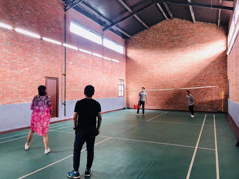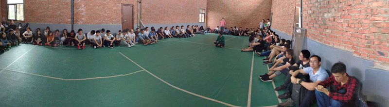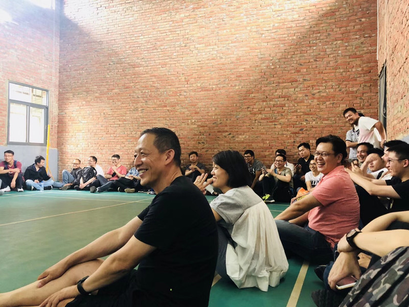 环绕着羽毛球馆,全体小伙伴席地而坐,氛围轻松且不拘谨,由主持人---云总介绍公司各部门管理层给伙伴们认识。
