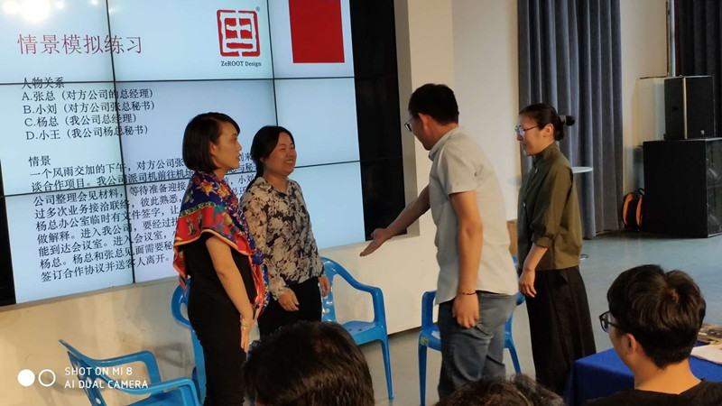 培训开始,思儒老师用风趣幽默的语言、生动的事例为我们诠释了究竟什么是礼仪,为什么要学礼仪,并通过现场体验式的互动学习让我们懂得尊重的重要性,待人接物、为人处世相互尊重,进行了更加深入的阐述。也让我们深刻地了解及体会面对职场,每天与客户、同事、合作伙伴的相处如何做到礼貌礼节得体、大方且不卑不亢。