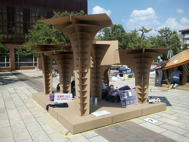 此次纸板建造节以设计符合孩童尺度的游乐场所为主要目的,思考不同空间能发生的不同活动的可能性,提供丰富有趣的临时性空间。竞赛要求各参赛队伍以包装箱纸板、金属连接节点、麻绳等材料,运用建筑结构力学和建筑构造一般原理,建造一栋纸板建筑。竞赛结束后,经相关评委选出的获奖作品将在昆明理工大学展览一周时间。建造节是一个充满挑战而又激发热情的建筑设计竞赛,受到了云南省各大高校的积极响应和一致好评,通过竞赛增进了与其他高校的合作与联系,共享了大学教育资源,锻炼和提升了学生的专业实践能力和动手能力。
